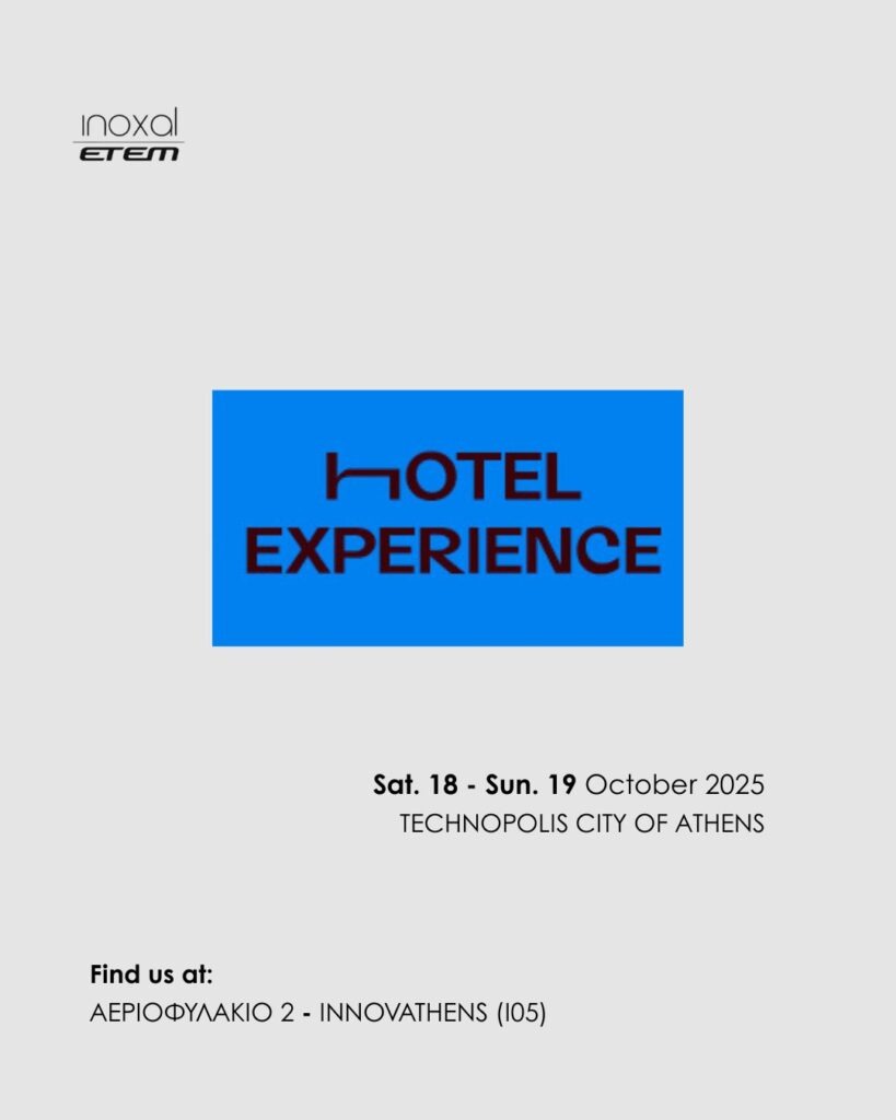 Η INOXAL συμμετέχει στο Hotel Experience 2025, στις 18 & 19 Οκτωβρίου, στην Τεχνόπολη Δήμου Αθηναίων, στο Γκάζι.